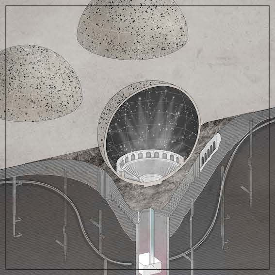 Trash Peaks proposes six projects that place the matters of waste –its flows, ecologies, and logistics– at the center of urban concerns. The six projects are: 1) Plastisphere, recycles obsolete plastic waste into a plastidome that hovers on top of the Changsin hilltop toy market; 2) E-Fungi Volcano, deploys fungi species over five levels of extraction to mine different rare earth metals from the e-waste stream in the Yongsan Electronics Market; 3) Janus Incinerator, embedded into the Bukhansan Mountain, burns waste from decommissioned landfills to power a quarter of the metropolis’ energy demands; 4) Towering Construction, wraps Seoul’s waste of concrete, steel, and wood around Mount Namsan; 5) Leachate Cenotaph, filters organic contaminant and ammonia concentrations in the reclaimed Sudokwon Landfill, 6) Methane Aviary, retrofits the vertical gas pipes of the excavated Nanjido island into an aviary forest.